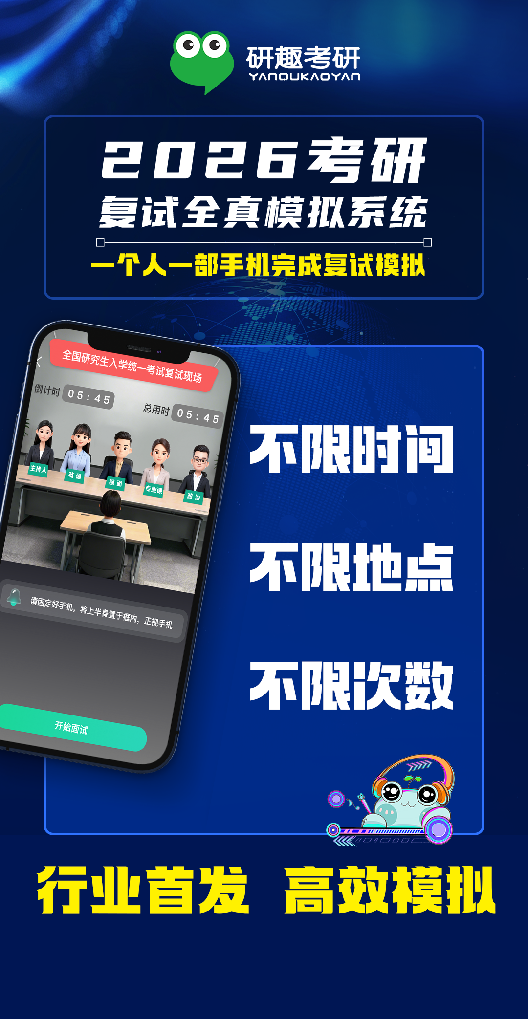考研复试临门一脚,多少考生因缺乏实战经验慌了阵脚?面对未知的考场氛围、随机的导师提问、英文问答的临场压力,即便专业课准备充分,也容易因紧张发挥失常。研趣考研 AI 复试模拟系统的出现,彻底打破了这一困境 —— 作为考研行业首家 AI 模拟面试系统,它以科技赋能备考,将线下面试场景 1:1 复刻到线上,让考生无需受限于时间、地点、次数,随时随地都能开展沉浸式实战训练。